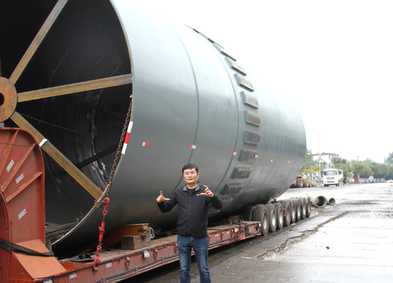 大家好我是鄭千里,是環(huán)球重工日常發(fā)貨記錄者,今天要裝運的是一臺大型水泥線回轉窯,因為窯體太長(68米),走陸運不安全,公司決定將窯體分為三段進行發(fā)貨。